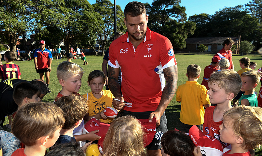 Josh Kennedy, Jarrad McVeigh and Lance Franklin are just some of the star Swans set to attend the 2019 AFL Community Camp in a variety of locations across the state on February 19 and 20.